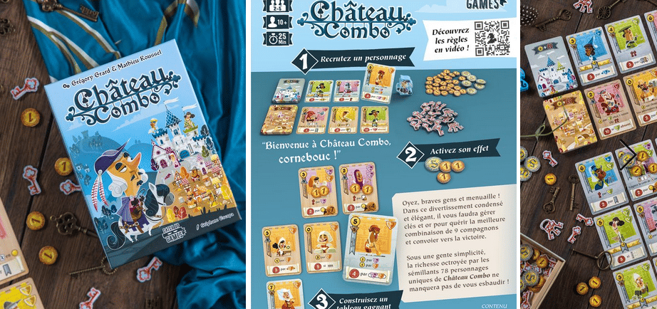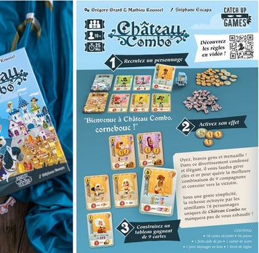 Dans Château combo, construisez un tableau gagnant en recrutant la meilleure combinaison de 9 personnages. Pour ce faire, gérez bien votre or, vos clés et le placement de vos cartes, tout en utilisant au mieux les effets de vos recrues !
