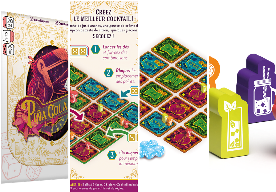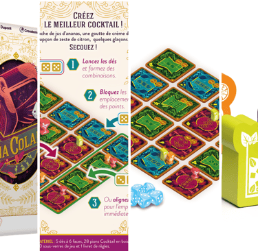 Piña Coladice, c'est le Yams revisité avec une touche tropicale ! Dans ce jeu de dés, chaque lancer vous rapproche de la victoire, mais attention aux pièges !